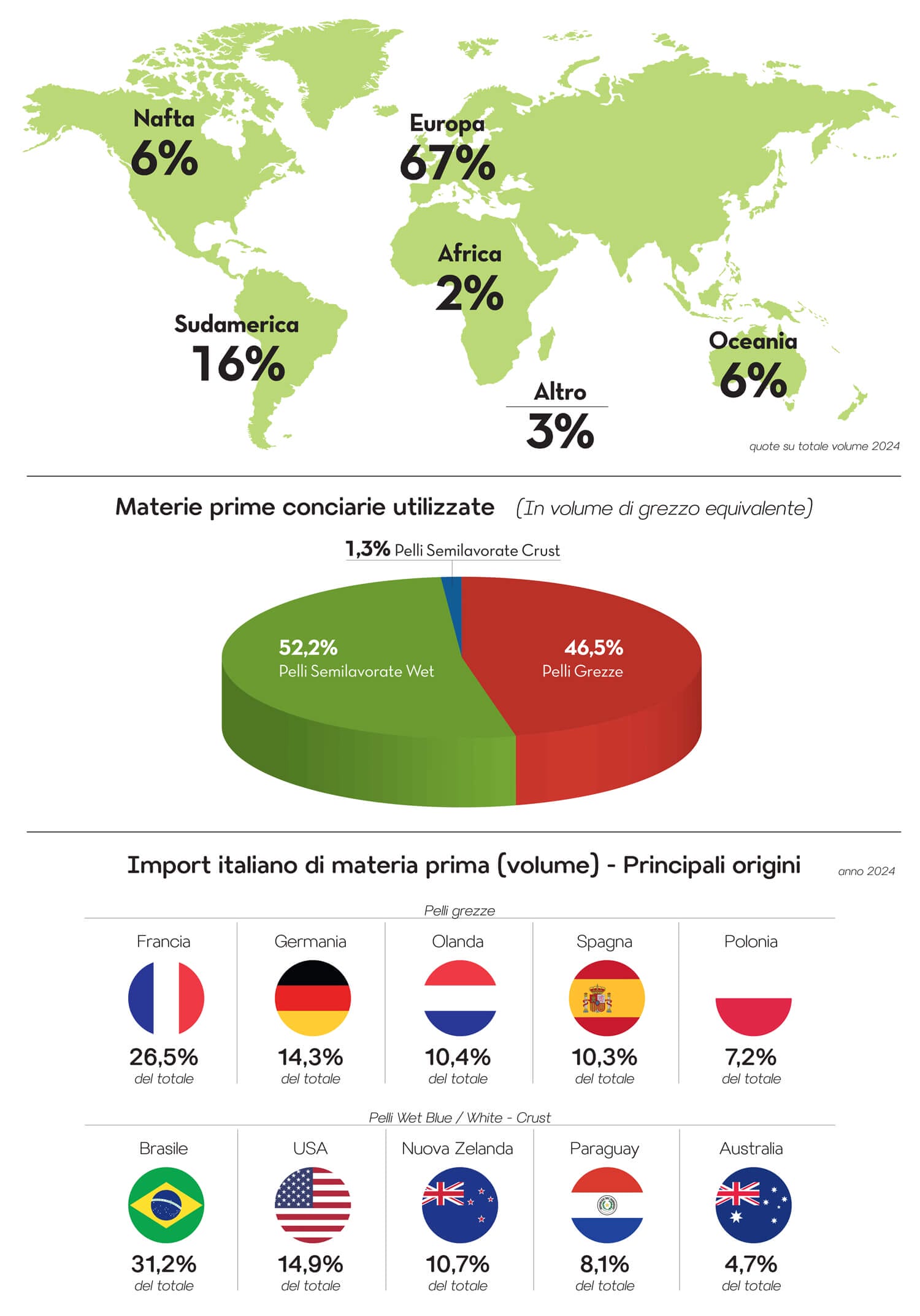 Dall’Europa e dalle Americhe, in prevalenza, ma da oltre 100 Paesi al mondo in totale; in quote quasi uguali tra materia prima allo stato grezzo e semilavorato (wet o, in minima parte, crust). Quando si dice che l’Italia è uno snodo centrale del commercio mondiale di pelle non si usa un eufemismo: lo è nella…