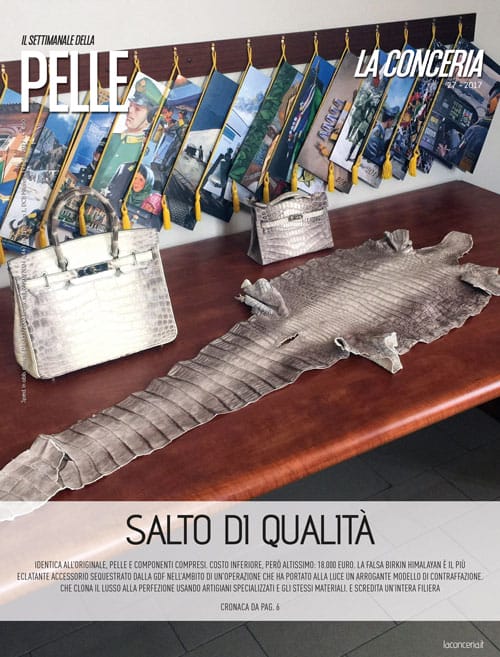 La contraffazione alza l’asticella. La GdF sgomina un giro di repliche al 98% simili alle originali (manca solo il certificato di autenticità), vendute a peso d’oro, confezionate da artigiani fiorentini. 7 arresti, 147.000 accessori sequestrati. Andrea Calistri: “Un incalcolabile danno d’immagine”.