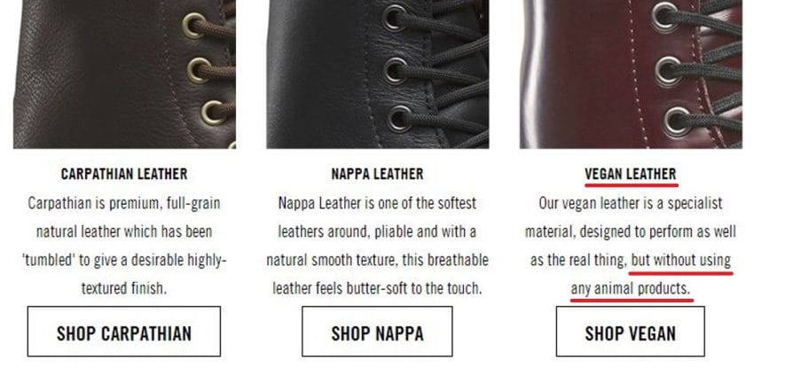 What’s the matter with you Dr. Martens? In their review of materials, they add “Vegan Leather”. There is no Vegan Leather though!