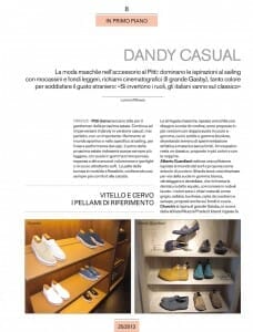 La moda maschile nell’accessorio al Pitti: dominano le ispirazioni al sailing con mocassini e fondi leggeri, richiami cinematografici (Il grande Gasby), tanto colore per soddisfare il gusto straniero. “Si invertono i ruoli, gli italiani vanno sul classico”.