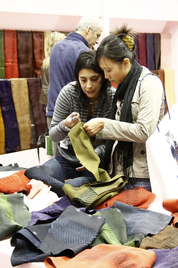 Momento favorevole per la più pregiata tra le pelli di serpente, cara ma disponibile in abbondanza. Concerie italiane leader, firme principali utilizzatrici. Ne parlano Dolmen e Legnotan (nella foto, lo stand Dolmen a Lineapelle)