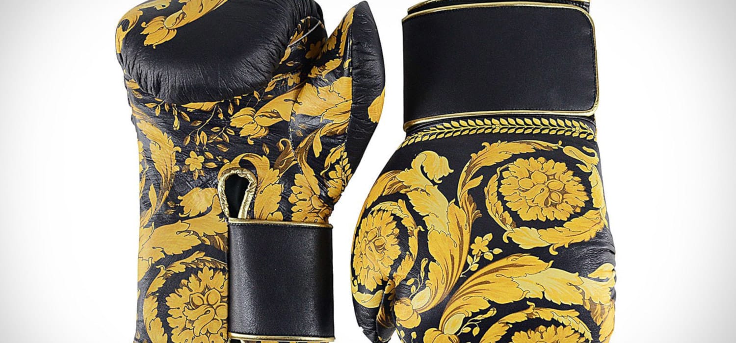 Vola come una farfalla, pungi come un’ape… ma con stile. Versace sale sul ring degli accessori di super lusso e lancia sul mercato un paio di guantoni da boxe in pelle capaci di mandare al tappeto i pugili più modaioli – e facoltosi. Il nuovo accessorio fa parte della collezione Barocco della casa di moda milanese, che ripensa all’indispensabile supporto per i boxeur con lo stile eccentrico che da sempre la contraddistingue.